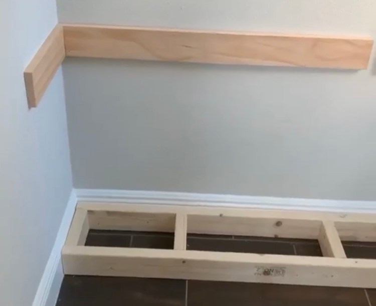 Once I was done building the base, I did a dry fit placement to ensure it was accurate and level. I then used 3″ cabinet/wood nails to install and secure them to studs in my wall. You can see a screenshot of the dry fit above. What you will also notice in the photo are some 1×4 pine wood buffers. Because I did not remove the baseboards, I needed to create a buffer for the cabinets to push them away from the wall and align with the base I built. These were also secured to studs in the wall, but this is not a step you will need if you take my initial advice and remove the baseboards. The next step was building the cabinets! For this I needed :