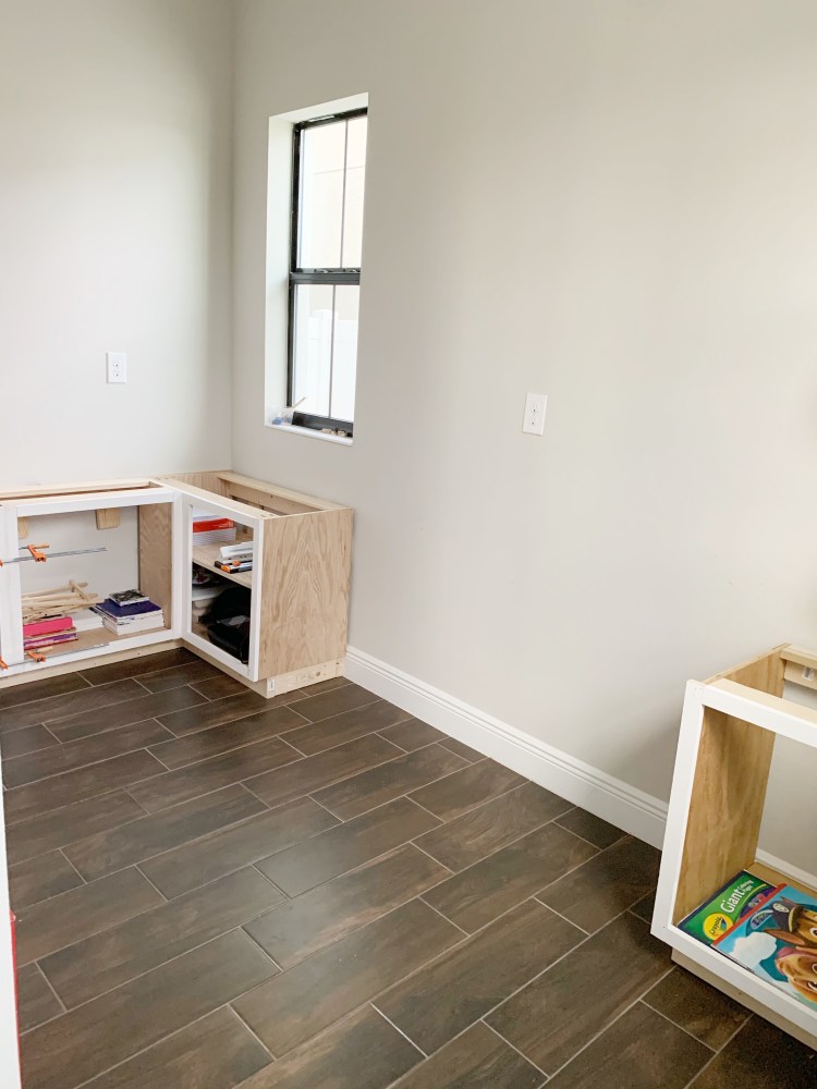 I’ll share my window trim process another day, but for now, let’s fast forward to July 2020. After learning that our kids would continue e-learning through the end of the year, I decided it was time to reclaim my breakfast table (at this point it had been the classroom for several months), clear out the pocket office, and became a self taught carpenter. Thats right, this 5’1″ human who could barely hang a curtain rod 3 months prior, was going to build some cabinets, a desk and a built in shelving unit. I had it all planned out in my head. I spent countless hours watching YouTube tutorials, read multiple how-to guides and even studied the cabinets in my own home. It took me roughly 6 weekends to build the cabinets and the counter top. At the time of the build, the idea of having a blog wasn’t even a blip on the radar, and so I didn’t consider documenting the process with photos along the way. I did, however, post some Instagram stories with the process, which would really be the best place to reference the steps. But I will try my best here.