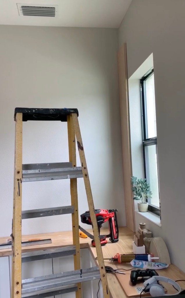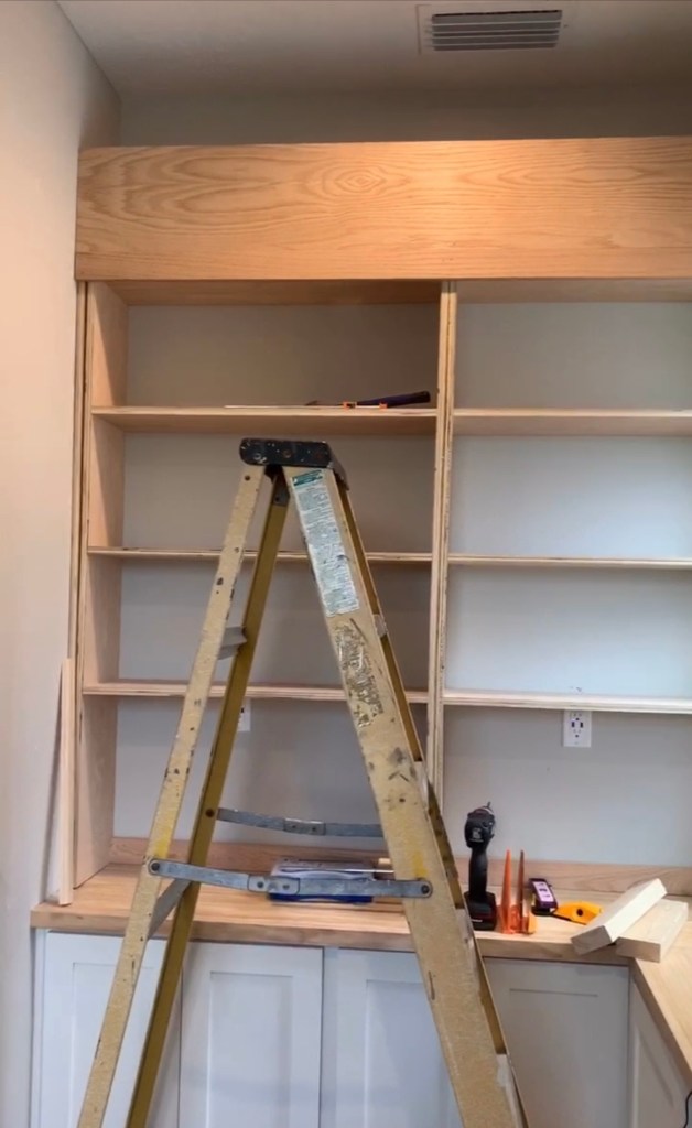 This is the final stretch of the pocket office build . . . And as it turns out, the fastest part of the entire build. I have always wanted some built in shelves, and I wasn’t sure that I would actually do this for the office, but I was kid free one weekend, our county was still in a semi lockdown because of Covid, and I had nothing else to do, so I figured I would give it a go. I love how built ins really elevate a space, and despite how much I loved the cabinets in here, it really felt like something was missing, and built in shelves seemed like the obvious option.
